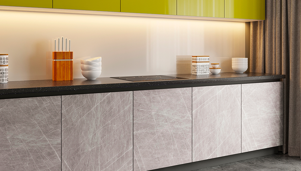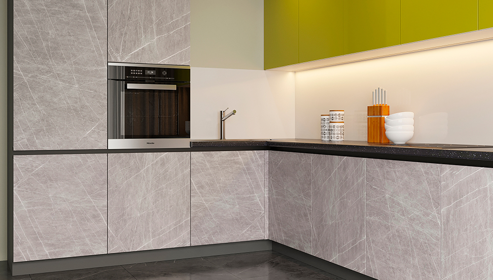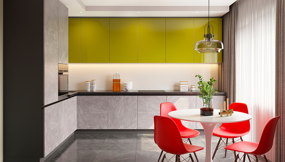 Мы хотели показать вам самые модные фасады: в тренде серый цвет и слегка небрежная "бетонная" фактура, оттенки лайма или бирюзы, сочетание матового и глянцевого. Ну вы поняли, кухни сейчас дизайнерские и совсем не скучные!